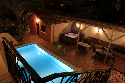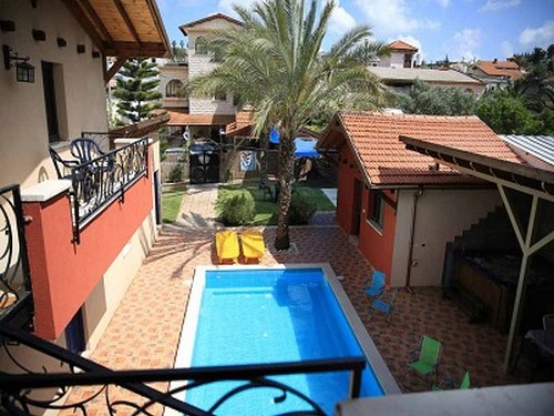 סביב היחידות חצר מרווחת עם פינות ישיבה ובמרכזה בריכה מקורה ומחוממת (בחודשי החורף) וגם ג'קוזי ספא גדול ומפואר להשלמת חווית ההנאה וההירגעות.