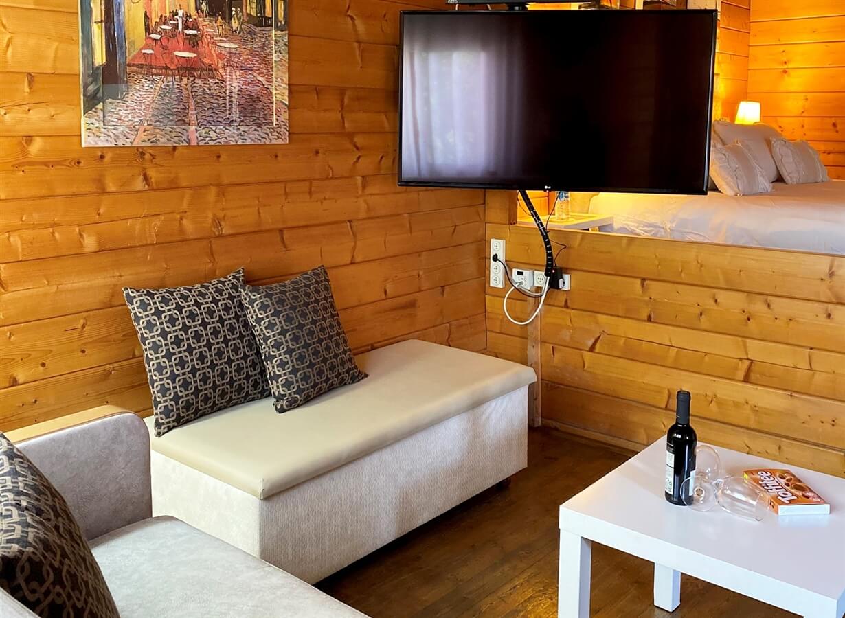 את חלל הבקתה עוטפת תאורה רומנטית שתנעים לכם את האווירה בשעות הערב. דיסקרטיות מלאה מובטחת.