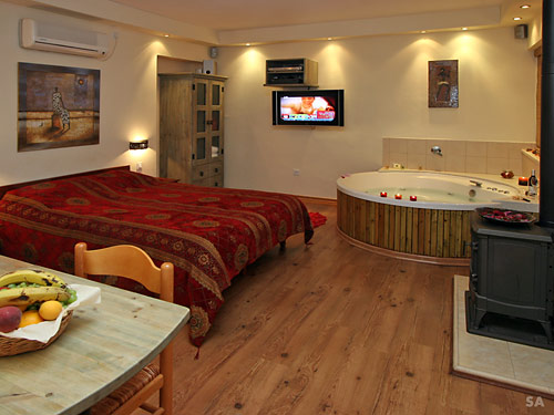 בכל סוויטה: ג´קוזי זוגי עגול מרווח ומפנק, מיטה מרווחת, קמין לימות החורף, טלוויזיה עם מסך lcd וחיבור ללוויין ומערכת קולנוע ביתית.