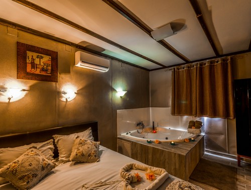 בכל אחת מהבקתות תוכלו ליהנות מפרטיות מוחלטת, מיטה זוגית מרווחת, ג'קוזי זוגי, טלוויזיה בכבלים, dvd, מערכת סטריאו וכדי להעשיר את החוויה הזוגית, ניתן בהזמנה מראש להזמין טיפול מסאז' מפנק וארוחת בוקר לחדר. במתחם תמצאו חצר רחבה וירוקה, מאובזרת ברהיטי גן ובריכת דגים לנוי.