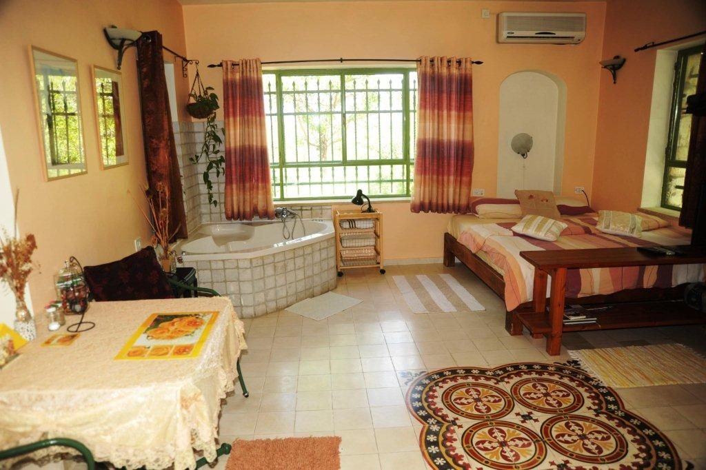 בסוויטה תוכלו ליהנות ממיטה רחבה ומפנקת, טלויזיה המחוברת ללויין, מכשיר dvd, פינת אוכל, ג'קוזי לאור נרות, חדר רחצה מאובזר בתחליבי רחצה, פינת קפה ומיניבר עשיר בפירות טריים, פירות יבשים עם אגוזים, גרנולה, יוגורט וחלב. בחצר הפרטית ישנו ריהוט גן וערסל מפנק ומוצל בצל הצמחייה הפראית של המתחם.
