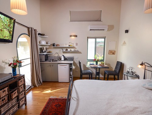 הסוויטות מוארות ע"י תאורה חמימה ומרגיעה ומטבחון מאובזר בכל שתצטרכו בכדי לא לצאת מהחדר כל השהות כמו פינת קפה, חלב ,עוגיות ביתיות ופירות. בנוסף, פינת ישיבה הפונה לחצר שקטה נוף מדברי ועצי הדר ריחניים.
