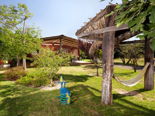 בחצר גינה מטופחת עם מדשאות ועצים, נדנדות וערסלים, פינות ישיבה מוצלות, מנגל, וחנייה בשפע.