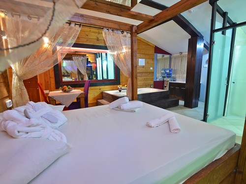 בסוויטות תהנו מג'קוזי ענק עם תאורה, סאונה פרטית, ומיטה זוגית גבוהה מרווחת. הסוויטות מעוצבות ברמה גבוהה ולכל אחת סגנון ייחודי משלה. עוד בסוויטה חדר רחצה מפנק ומאובזר בכל מה שתצטרכו בשביל בריחה קטנה של כמה שעות. במטבחון בר משקאות קלים, פינת קפה עם מכונת אספרסו, כיבוד קל ובקבוק יין מפנק. להשלמת החוויה ניתן לקבל טיפולי ספא מרגיעים בסוויטה הפרטית.