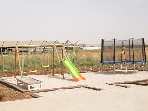 בחצר המתחם מדשאות מטופחות המשקיפות לנוף הגלבוע.