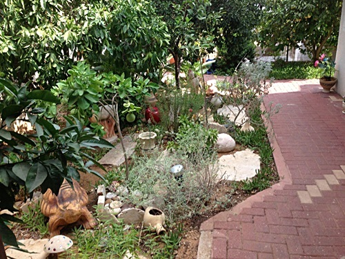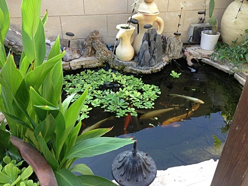מחוץ לסוויטה חצר מטופחת ופינת ישיבה אינטימית ודיסקרטית לצד בריכת דגי נוי, אקווריום וצמחייה.
