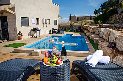 לסוויטות מתחם חצר מטופח בו תיהנו בראש ובראשונה מבריכה מרעננת תחת כיפת השמיים. מסביבה מיטות שיזוף ופינות ישיבה - והכל אל מול נוף מהמם לכנרת והגולן.