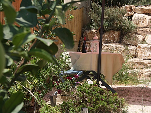 מהיחידות הרומנטיות יציאה לחצר ציורית עם מדשאות ירוקות, צמחיה מגוונת ועצי פרי. בחצר הפסטורלית ממוקמת פינת ישיבה אינטימית המשקיפה לנוף מרהיב ושופע.