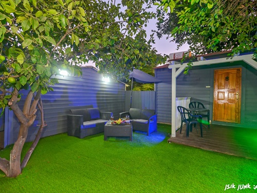הבקתה עם פרטיות מלאה, כניסה דיסקרטית וחניה צמודה.