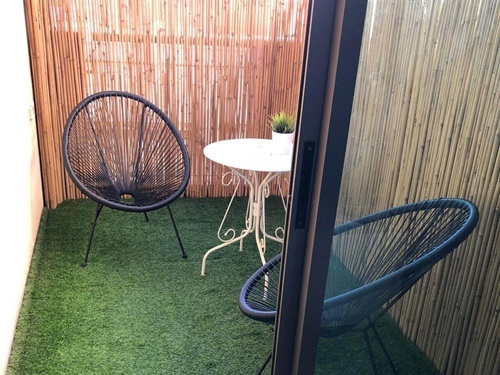 - מרפסת פרטית עם ריהוט גן ונוף לים התיכון