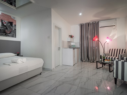 בכל הסוויטות מטבחון הכולל מיני מקרר ופינת קפה וכן פינת ישיבה עם כורסאות ושולחן קפה בחלל החדר.
