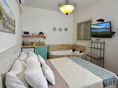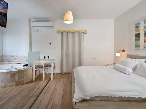 בכל סוויטה תיהנו ממטבחון עם עמדת קפה/תה, מסך טלוויזיה בכבלים, חדר רחצה מפואר והדובדבן שבקצפת - ג'קוזי זרמים אינטימי ומפנק לאור נרות.