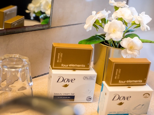 - חדר רחצה עם תחליבים ריחניים ומגבות