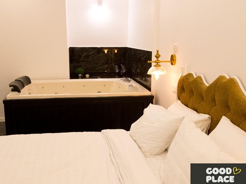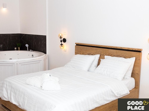 מיטה זוגית גדולה ומסוגננת עם מזרן איכותי ומצעים מלטפים, טלוויזיה בחיבור לערוצי לוויין, אינטרנט אלחוטי חינם, מיזוג אוויר, תאורה נעימה שתעניק לכם אווירה רומנטית, חדר רחצה יוקרתי עם מגבות פנים וגוף נקיות ורכות, סט תחליבים מבושם, ערכת קפה/תה, מכונת אספרסו, שוקולד משובח ושתייה קלה.