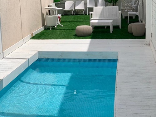 אורחי הסוויטות נהנים מחצר גדולה ומטופחת, במרכזה בריכה מרעננת תחת כיפת השמיים המוקפת פינות ישיבה, עמדת BBQ ומיטות שיזוף שכיף להתרווח בהן.